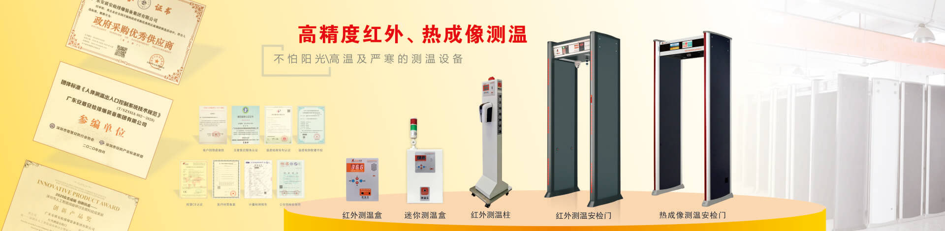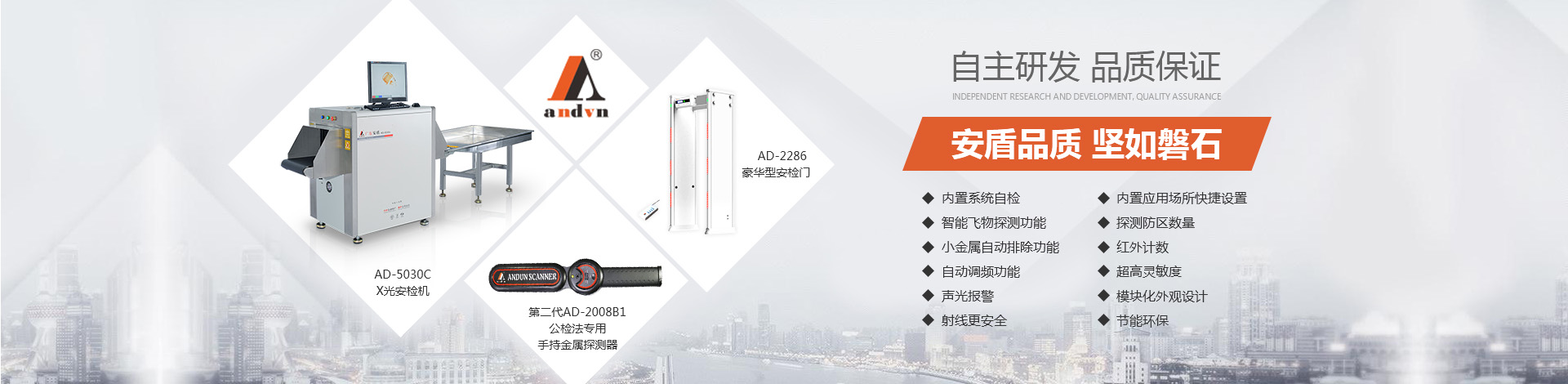 目前公司技術(shù)底蘊(yùn)日益豐厚,擁有多項(xiàng)國家專利,在產(chǎn)品開發(fā)和創(chuàng)新方面有較深的制造經(jīng)驗(yàn)?!鞍捕芷焚|(zhì) 堅(jiān)如磐石”是安盾人永恒不變的發(fā)展理念,公司目前已通過國際質(zhì)量體系認(rèn)證、國際環(huán)境體系認(rèn)證、國際職業(yè)健康體系認(rèn)證、產(chǎn)品已通過國家安全防范報(bào)警系統(tǒng)檢測(cè)中心和公安部安全與用電子產(chǎn)品質(zhì)量檢測(cè)中心合格認(rèn)證,并取得所有型號(hào)檢測(cè)報(bào)告,《GB15210-2003通過式金屬探測(cè)門》標(biāo)準(zhǔn);并獲得國家高新技術(shù)企業(yè)認(rèn)證、國家AAA級(jí)信用認(rèn)證,歐盟CE認(rèn)證、ROHS認(rèn)證、美國FCC認(rèn)證、廣東職業(yè)衛(wèi)生檢測(cè)中心頒發(fā)的檢測(cè)報(bào)告、東莞市環(huán)境保護(hù)局頒發(fā)的《輻射安全許可證》,中國人民解放軍認(rèn)證產(chǎn)品、中華人民共和國進(jìn)出口企業(yè)、愛心公益企業(yè)等榮譽(yù)稱號(hào);先后被當(dāng)選為中國安全防范產(chǎn)品行業(yè)協(xié)會(huì)會(huì)員單位、廣東安防行業(yè)協(xié)會(huì)理事單位、東莞市安防行業(yè)協(xié)會(huì)常務(wù)副會(huì)長單位、中國安檢排爆聯(lián)盟常務(wù)理事單位、連續(xù)五年榮獲廣東省守合同重信用企業(yè)、中國警用裝備十大品牌、中國十大特種裝備品牌、科技型中小企業(yè)、廣東省高新技術(shù)產(chǎn)品等榮譽(yù)稱號(hào)、安盾集團(tuán)平均每年服務(wù)至少200場(chǎng)大型活動(dòng)安保任務(wù)。